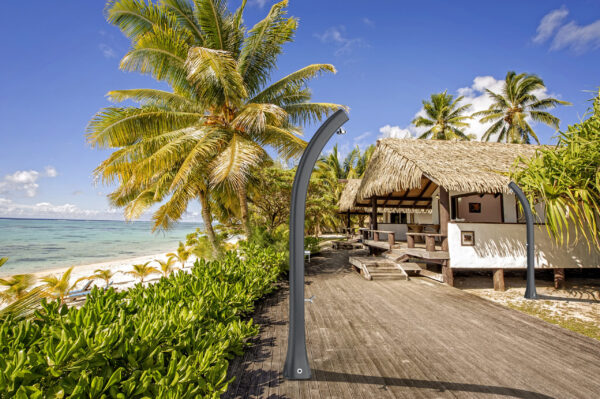 • SOFFIONE NEW IN INOX • MISCELATORE • LAVAPIEDI • REALIZZATA IN POLIETILENE COLORATO IN MASSA • ACCESSORI IN OTTONE ABS CROMATO • ATTACCO DOCCIA POSTERIORE