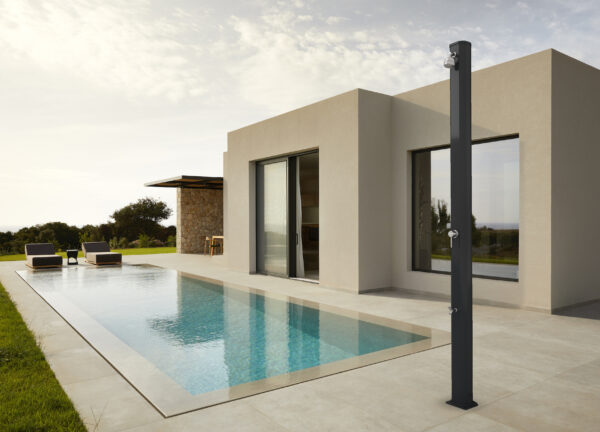 • SOFFIONE • MISCELATORE • LAVAPIEDI • REALIZZATA IN ALLUMINIO VERNICIATO A POLVERE • ACCESSORI IN OTTONE ABS CROMATO • ATTACCO DOCCIA LATERALE DESTRO