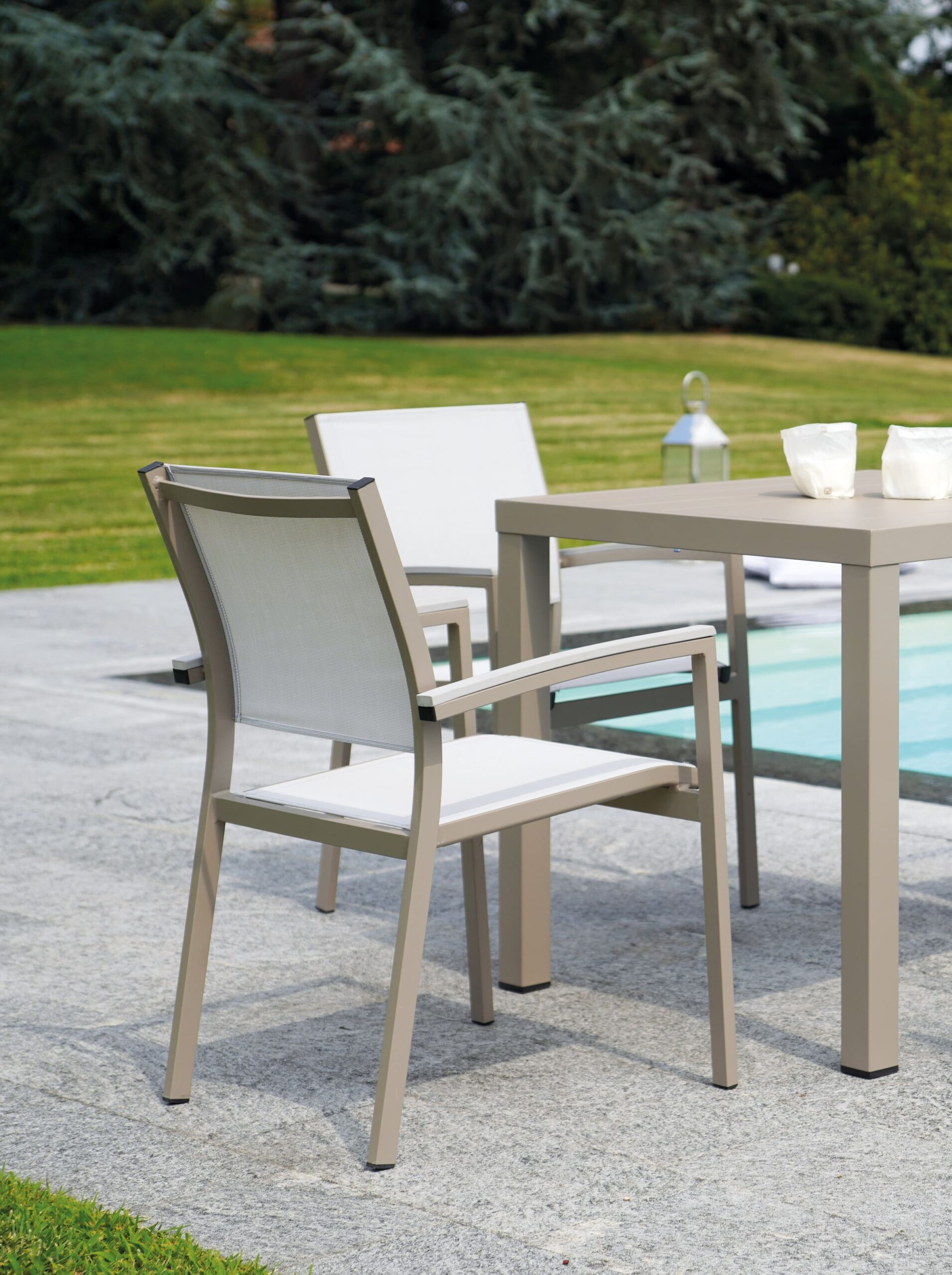Poltrona alluminio e texilene Portland bianco opaco cm55x56h86