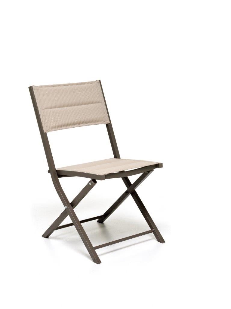 STRUTTURA IN ALLUMINIO VERNICIATO A POLVERE EPOSSIDICA DI COLORE BROWN, SEDUTA E SCHIENALE IN TEXTILENE IMBOTTITO DI COLORE TORTOR