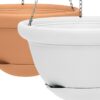 Vasi da appendere in resina dalla linea moderna. Appeso con le catenelle incluse viene proposto in colore terracotta e colore bianco. Leggero, pratico e resistente.